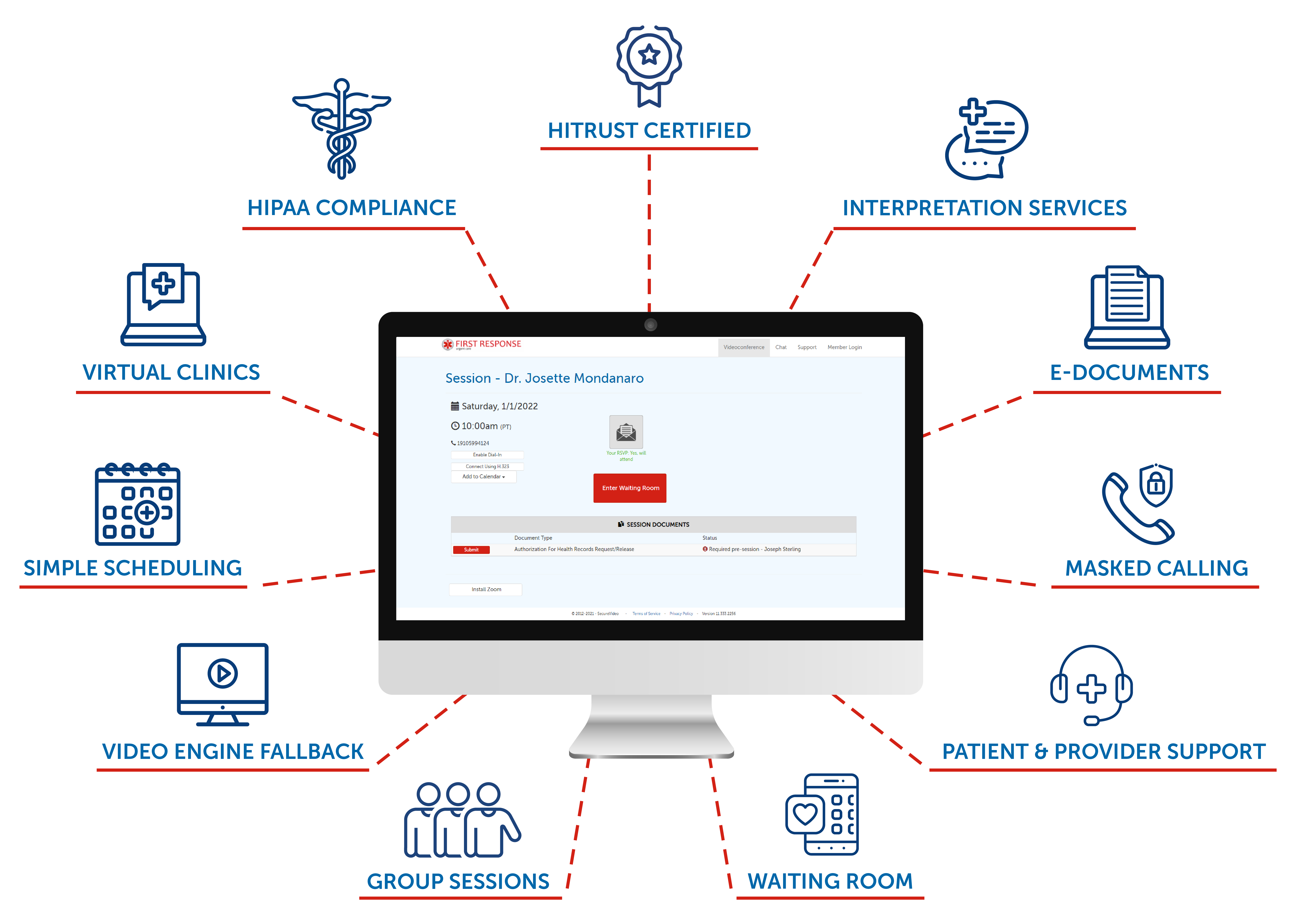 Complete with scheduling capabilities, hybrid video engine options, account customization capabilities, system integration, and stability, providers rely on SecureVideo to provide the best telehealth experience possible. Browse the benefits of each feature on the SecureVideo platform below and click to learn more.